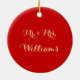 Personalizado, personalizado, bonito, elegante, falso ouro tipografia / roteiro, noiva & noivo, marido & esposa, casamento / aniversário guardam adorno de porcelana cerâmica com uma fita de ouro para pendurá-lo. Para personalizar, basta digitar o nome da noiva & noivo / marido e esposa, a data do casamento, as iniciais do casal e o nome da família / sobrenome da noiva & noivo / marido e esposa. Faz um presente maravilhoso para noiva e noivo, recém-casados, casais, para casamento, aniversário, chá de casamento e muito mais.