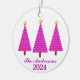 Ornamento em um moderno século médio, em três árvores de Natal, em ametista e ameixa roxa, com nome e data personalizáveis