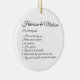 O Casal de Arte de Casamento dá nomes de Fatos Fatos personalizados de foto elegante e adorável ornamento cerâmico. Texto de caligrafia em preto-e-branco e fundo branco. Excelente como favores de casamento, Natal, presentes de férias.