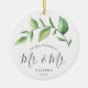 Você se casou este ano? Adicione uma memória à sua árvore com este ornamento cerâmico de manutenção com um galho rústico de aquarela pintada de verde e a mensagem "nosso primeiro natal como sr. e mr." junto com seu sobrenome e o ano. As costas têm sua foto favorita. Este ornamento também faz um presente de excelente para um casal novo gay para o seu primeiro Natal.