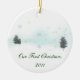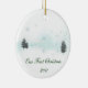 Uma paisagem simples mas elegante em um ornamento que comemora "nosso primeiro Natal".