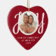 Este apetite, festivo, vermelho, em forma de coração Primeiro Natal, como o ornamento fotocerâmico do Sr & Sra. é decorado com a palavra "JOY" na tipografia na moda branca. Facilmente personalizável.