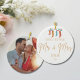 Celebre seu primeiro Natal como um casal casado com nosso adorável ornamento personalizado. Esta encantadora marca o texto "Nosso Primeiro Natal como Sr. & Sra." seguido do seu nome familiar e do ano, elegantemente escrito de um lado. Do outro lado, você pode adicionar uma bela foto do casal feliz para torná-la realmente única. Perfeito por comemorar seu marco especial, este ornamento adiciona um toque pessoal ao seu decoro de férias e faz um presente sincero para recém-casados. Criado com cuidado e atenção aos detalhes, é um ornamento que você vai apreciar por anos.