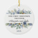 Ornamento De Cerâmica Nosso Primeiro Natal Juntos Aquarela Folhagem