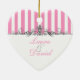 Este ornamento listrado cor-de-rosa e branco tem detalhes de rolagem prateada e é personalizado como um Primeiro Natal em conjunto. Corresponde à coleção de casamento mostrada abaixo, e faria uma boa manutenção do seu dia especial, ou um presente de excelente para os recém-casados.