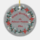 O Ruim Natal francês Bulldog Dog Antlers Greenery Cerâmica Ornament será o ponto alto da sua árvore. Um Bulldog Francês brincalhão vestindo ornamentos em suas pretensas galhadas parece que ele está olhando para Papais noeis. Bonita mão pintou um verde de férias sagrado, pinheiro e poinsettia em vermelhos de Natal e verdes decoram o fundo do ornamento. Tudo isso em um fundo de textura rústica de madeira de cinza. Mude o nome do cão para o seu filhote. A parte de trás do ornamento tem uma coroa de verde igual em uma textura de papel kraft de cinza e tem o ditado "Happy Howlidays e também "Anderson Humans" e o ano para editar e fazer dele seu próprio. Este texto, assim como todo o texto deste ornamento, é editável com a ferramenta personalizar. Torne o seu Bulldog Francês orgulhoso e faça vários deles se espalharem pela sua árvore. Este ornamento, assim como guardanapos e placas de papel correspondentes para as suas festas de férias estão na nossa COLEÇÃO "HELY HOWLIDAYS DOG" em nossa loja.