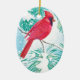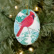Este ornamento apresenta um lindo cardeal vermelho sentado em um galho coberto de neve de um pinheiro observando os flocos de neve descendo do céu para cobrir o terreno com uma neve branca.