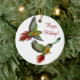 Design original das belas artes de voar o mordente verde Conures pelo desenhista Carolyn McFann do estúdio de ronrom de dois gatos em uma qualidade e de enfeites de natal customizáveis para amantes do papagaio.