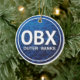 Personalizado OBX Outer Banks North Carolina, ornamento de etiquetas de praia. Letras azuis e brancas do oceano. *