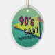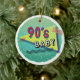 Bebê Ornament, de 90 anos, com tipografia divertida do "Bebê dos 90''. O design inclui elementos de blues, laranjas e pinks, bordas amarelas, cortadas, padrões geométricos e formas inspiradas na década de 90.