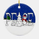 Ornamento Snowman da Paz. Trabalho de arte de Kathy Gladden-Adalian A cor de fundo atrás dos flocos de neve pode ser personalizada com uma grande variedade de cores.