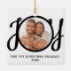 This keepsake First Christmas Engaged photo ornament is decorated with the word JOY in black, stylish script typography. Easily customizable.