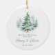 Ornamento De Cerâmica Our First Christmas Engaged Modern Script Tree