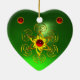 Ornamento De Cerâmica OURO ROSA RUBY,Coração Verde Esmeralda