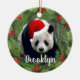 Panda de Natal Traga muito mais alegria de férias para sua árvore com um ornamento cerâmico personalizado.Adicione fotos de família, amigos e uma mensagem pessoal aos dois lados deste ornamento. Um fio de ouro torna mais fácil pendurar essa fantasia.