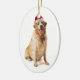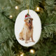 O Natal não vai aos cães com este ornamento alegre. Um Ouro amigável Retriever veste um chapéu de Papai Noel para entrar no espírito de Natal. Edite a mensagem no reverso conforme desejado. Disponível com produtos correspondentes.