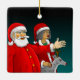 Papai Noel, Sra. Papais noeis e Rudolph em uma decoração de Natal cerâmica.