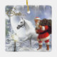Ornamento De Cerâmica Papai Noel com Cavalo Branco