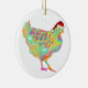Papais noeis de Natal Galinha no chapéu de elfo Simky Festivo. Fazenda Colorida Hen festiva, decoração de árvores de Natal para iluminar a época de férias e o presente ideal para a família e amigos fazendas e amantes de frango. Esta galinha fedorenta em verde-vibrante, amarelo, laranja, roxo, aqua e vestindo um lindo vermelho e creme Papai Noel que tem uma decoração divertida de árvores festivas. Quirky fazenda hen, artista Catherine Sweetman