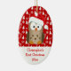 Texto personalizado ou nome Enfeites de natal para crianças com uma coruja de desenho animado com chapéu vermelho, inclui a legenda de texto "primeiro natal do bebê" ou "primeiro natal do seu filho, ano", etc. Essa cara bonita está pronta para se divertir com um pássaro animal. Uma coruja marrom de desenho vestindo um chapéu vermelho e branco, e um padrão de fundo para cargas de entusiasmo.