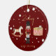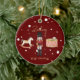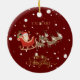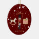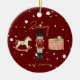 Esta design ruiva da árvore de Natal vermelha e caprichosa mostra uma cena do quebra-cabeça infantil completa com um cavalo balançante, um conjunto de tambores e um soldado de brinquedo na frente com um Papai noel trenó e folha de ouro falso Feliz Natal nas costas. Esta decoração personalizada de árvores de Natal para crianças de luxo está completa com um nome de crianças personalizadas de guião rústica dourada e uma mensagem de Feliz Natal.