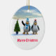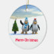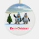 Aqui estão dois pinguins felizes que estão todos prontos para celebrar as férias com sua decorada árvore de Natal.
