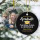 Comemore a conquista do formando com um Enfeites de natal personalizado de graduação em preto-e-ouro com fotografia e redondo. Imagem e todo texto são simples de personalizar. Inclua o nome e o grau da escola, parabéns, obrigados, mãe e pai, ou outra mensagem da sua escolha. Design apresenta um fundo preto, boné de formatura amarelo de ouro, nome personalizado para a tipografia moderna, escola, ano de aula e uma foto da sua escolha, como uma fotografia ou imagem de mais velho da cerimônia de início. Faz uma boa ideia de presente de guardas e um complemento elegante para a decoração domiciliar de Xmas. Parabéns ao formando!