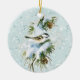 Ornamento De Cerâmica Pássaro Chickadee Pinecone Snow Teal de Natal