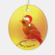 Lindo enfeite com passarinho de Natal em fundo dourado. Ideal para pessoas que amam a Natureza!