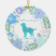 Ornamento De Cerâmica Pastel Blue Floral Labrador Retriever Custom Photo