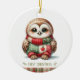 Ornamento De Cerâmica Patchwork Owl First Christmas Keepsake Photo