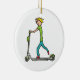 Características de design elétricas do patinete um e-patinete que está sendo montado com estilo pela figura da vara com cabelo elétrico. O patinete de e é um transporte ecológico alternativo que aconteça ser legal montar.