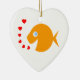 O bonitinho peixe dourado com Olhos Azuis e Ornamento de Árvore de Natal em Forma de Coração apresenta um doce peixe de olhos azuis soprando beijos na frente e seus desejos pessoais de Natal nas costas. Perfeito para uma garotinha, filha ou neta, que tem olhos azuis, ou que tem um peixe-dourado. Na verdade, se você tem um ictiólogo em sua família e está planejando dar a ela um aquário, este ornamento personalizado daria um belo segundo presente! A coisa boa é que é uma guarda de férias durável que pode eventualmente ser passada para sua própria filha e neta. Pode estar pendurado em árvores cem ou mais anos no futuro!