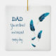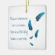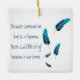 Este elegante ornamento de árvore de Natal em forma de pena azul é uma homenagem maravilhosa a entes queridos falecidos. A decoração apresenta 5 penas azuis e a frase 'Porque alguém que amamos está no céu, há um pouco de céu em nossa casa' No verso, há a opção de personalizar e digitar uma mensagem pessoal. Todos os estilos de fonte e a cor do fundo podem ser alterados clicando no link personalizar mais após a personalização.