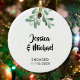 Celebre sua noivado neste Natal com este elegante Ornamento de Árvore de Natal. É decorado com água-colorido. Facilmente personalizável.