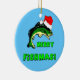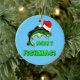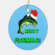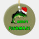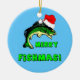 Fishmas alegre! Peixes de salto engraçados e divertidos com chapéu do papai noel desejando lhe o Feliz Natal a única maneira sabe. Ornamento cómicos dos presentes do Natal da pesca para decorar a árvore de Natal do feriado para o pescador.