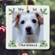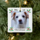 Celebrar um Natal de 1rua com este adorável ornamento fotográfico decorado com folhagem festiva de aquarela e bagas. Facilmente personalizável com a foto do seu animal de estimação.