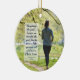 Um adorável ornamento personalizado de citação inspiradora mostra uma garota correndo em um belo caminho cênico e apresenta a Bíblia Verse Philippians 3:13-14, "Esquecendo o passado... Eu pressiono em direção ao gol do prêmio do chamado ascendente de Deus em Jesus Cristo." O nome de trás e a saudação podem ser personalizados para os detalhes de sua escolha e usados para muitas ocasiões.-