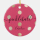 Dê ao seu companheiro de equipe ou jogador de picleball este presente de feriado de ouro fofo, rosado e giro. O design moderno parece um picleball e inclui fontes modernas de script. Adicione o nome dos jogadores para lhe dar um toque pessoal. Uso para troca de presente de ornamento de feriado, prêmio de torneio ou presente de participação.