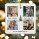 Watercolor Pine Tree with elegant gold bows in the center surrounded by personalized collage of 4 Photos, Family Name and year in Script calligraphy towards bottom. This is an Elegant, Modern, Holiday Christmas Ornament!