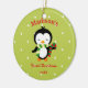 Ornamento De Cerâmica Pinguim bonito e bolinhas do primeiro Natal do