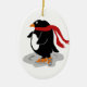 Um pinguim com um gelo longo e vermelho escaravelho patinando em um ornamento de guardiã que é um presente excelente para qualquer um que ama patinação no gelo e pinguins!