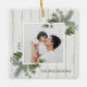 Celebre a época mágica e festiva de feriado com nosso ornamento de fotos de feriado personalizado. Nossa design de feriado rústica e festiva mostra o fundo do escudo branco de madeira rústico com nossas agulhas de pinheiro festivas desenhadas à mão e verde de inverno moldando os cantos da foto. Personalize com seus Cartões de natal, ano de assinatura da família e foto. A arena de Natal é uma obra de arte original desenhada à mão por Moodthology Papery.