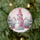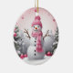 Ornamento De Cerâmica Pink Christmas Snowman