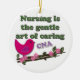 Os cuidados estão importando-se com um pássaro cor-de-rosa bonito