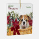 Ornamento De Cerâmica Poinsettia Bulldog Cama de Natal