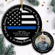 Na Memória Adorável. Honre seu amado policial e com este ornamento da Polícia Thin Blue Line em uma bandeira americana design preto e azul em cores da bandeira policial. Personalize com sua foto policial, o nome do oficial e a data final. Esta decoração da polícia de linha azul fina será um tesouro para homenagear um policial ou policial polícia morto. Perfeito para os departamentos de polícia honrarem um oficial caído. COPYRIGHT © 2020 Judy Burrows, Black Dog Art - Todos Os Direitos Reservados. Polícia Adora Memória Falhou Oficial Memorial Cerâmica