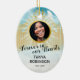 Enfeites de natal personalizado de manutenção do memorial para alguém que perdeu um membro da família, amigo ou animal de estimação. Um tributo perfeito à decoração da árvore com uma foto tesourada, os portões ouros do céu no céu, uma pomba branca, seu nome e anos de vida.