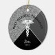 O Ornament Cerâmico Personalizado por Prata Médica Física Terapista faz uma ideia perfeita de presente. Ele tem um design elegante moderno com brilho falso prateado, preto e abstrato cinza. Um símbolo médico caducius branco está no centro e o "melhor fisioterapeuta" tem uma letra mínima arrojada. Personalizado com o nome na letra de script de caligrafia branca seguida de ano personalizado. Design está em ambos os lados. CLIQUE EM PERSONALIZAR OPÇÃO MODELO E SIGA OS PROMPTS.