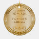 Crie um presente personalizado de 50º aniversário de casamento do ouro adicionando os nomes dos casais, as datas de aniversário e a fotografia a este ornamento. Este fundo de gradiente de ouro falso não é uma folha de alumínio real, mas um tom de ouro na moda. Toda a tipografia moderna é editável. "Celebrar 50 anos" pode ser editado, se necessário. Este seria o presente perfeito para um ouro 50º aniversário de casamento. Você pode personalizar o Enfeites de natal de manutenção com nomes, data e uma fotografia do casal. O design de um tipo de diamante e anéis de ouro é meu próprio design criado para você. Dê aos seus pais, avós, ou amado um belo presente de aniversário de casamento do ouro 50. Também faria um adorável favor e presentes para os convidados.